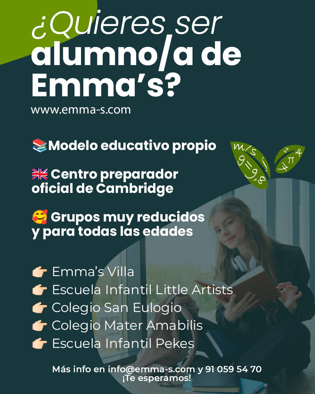 Emma’s es un modelo educativo registrado en el Registro de Propiedad Intelectual como obra de clase científica. Es el resultado de trabajar durante los últimos 10 años en un proyecto de investigación para averiguar cuáles son los factores que intervienen de manera natural en el aprendizaje y sus procesos, y de qué manera trasladar el resultado de ese trabajo a clase para llegar lo más cerca posible a individualizar el aprendizaje y capacitar a nuestros alumnos.